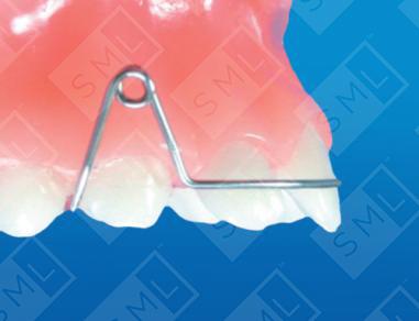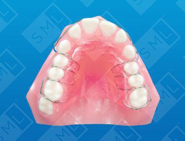 The Apron Spring Appliance is an alternative to retracting flared anteriors with an elastic force. This removable appliance uses light spring pressure to gently guide the centrals and laterals lingually. When protrusive position is associated with a habit, tongue or thumb, control loops can readily be incorporated into the palatal area to provide habit control. Note: Minimal adjustment is required to keep the appliance active. Make sure to relieve the acrylic away from the lingual aspect of the anteriors before attempting to move them lingually.