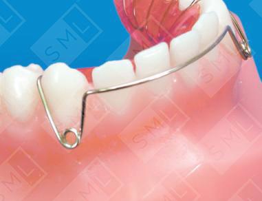 The Apron Spring is an active labial arch wire that is primarily used to retract severely flared anteriors. It features two spring coils for light, continuous lingual movement and is easily activated with finger pressure.