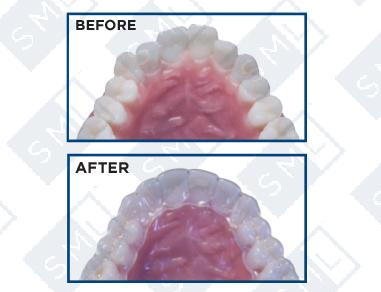 Designed exclusively for correcting minor to intermediate crowding, spacing or post-ortho relapse, SML® Clear Moves ™ utilizes a series of clear flexible trays (2 ½ month, 5-tray treatment course) to align the anterior dentition (lateral to lateral only). Each custom tray is clearly labeled in successive order and changed every 2-3 weeks until treatment is completed.