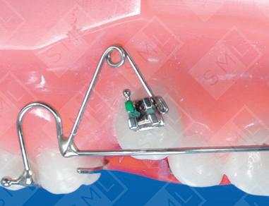 Occasionally an erupting cuspid may need to be tipped distally and lingually while the remainder of the arch needs little (if any) additional treatment. In this situation, you may consider use of a combination removable appliance with a cuspid retraction spring and a direct bond straight wire bracket. The bracket not only provides a positive contact point for the activated spring, it also allows for the use of an elastic (if desired) to enhance the movement.