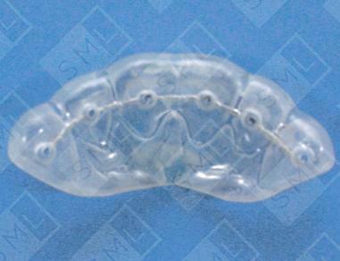 The key advantage to this appliance is the laboratory-fabricated transfer tray that makes correct placement of the wire easy -- and with a minimum of chair time. The transfer tray has small reservoirs at each bonding site, with an excess-material escape channel directly lingual to each of the anterior teeth. This assures a complete wrap of bonding cement around the lingual wire.