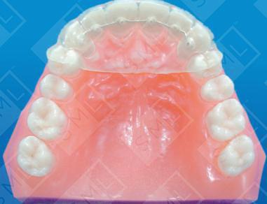 To place the appliance, the reservoirs are filled with composite by use of a syringe. The tray is then gently seated via finger pressure, allowing any excess composite to flow out of the escape channels. Then it is light-cured. After curing, excess cement is removed from the tray with a high speed hand piece and a diamond -- and the tray is then lifted, slowly and carefully, off the teeth. The top of the individual composite buttons can then be polished for patient comfort with a composite diamond or disc. Complete, step-by-step, chair-side instructions are provided with your first E-Z Bond Retainer. Note: When requesting an E-Z Bond Retainer for the maxillary anteriors, it is important to send an opposing model and a wax bite. Sufficient overbite and overjet is essential to provide clearance for the maxillary E-Z Bond Retainer.