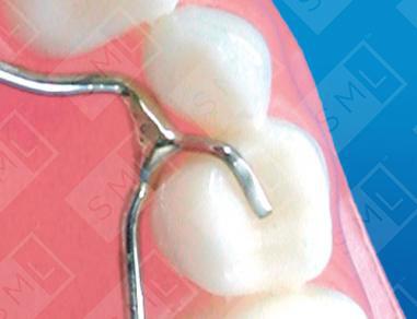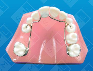 By utilizing bands on the molars or premolars and a lingual arch wire, an esthetically pleasing temporary fixed anterior space maintainer may be constructed. Each anterior tooth (up to four) is fitted to a wire that has been soldered to the arch wire. Acrylic is then applied to bond them into a single unit. Primary or adult replacement teeth are available in the appropriate Bioform™ and Vita shades. This appliance can give the patient very pleasing esthetics, but requires extra care as it is vulnerable to distortion and breakage. Note: We recommend that you always prepare rest seats in the supporting teeth. This will allow you to bond the occlusal rests into position, gaining extra retention while keeping the occlusion clear of any interference.