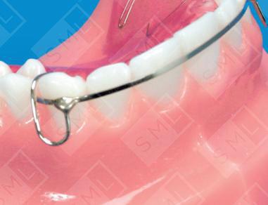 Added retention to stabilize the cuspids after tooth movement can also be accomplished by contouring the flat wire back to the distal of the cuspids. (See “Contoured-Flat Hawley”)