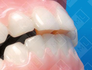 Lingual Bonded Incisal Blocks are regularly used during full-fixed appliance therapy and can be employed to perform several functions. One of the most common functions is to expedite therapy in cases where an excessively deep bite prohibits bracketing of the lower incisors. Incisal Block placement can provide the clearance needed to allow for mandibular bracketing at the beginning of treatment. This allows you to begin aligning the lower arch and improving the vertical dimension immediately, while protecting the lower brackets from being sheared off by the upper anteriors. After the incisal blocks are bonded, speech may be slightly affected for a day and mastication for a week (sometimes longer for adults). Molar contact will be re-established after three to four months in children and four to six months in adults, but the blocks should not be removed until an effective occlusion with normal incisor relationships is established.