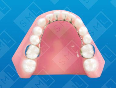 This tongue-thrusting appliance is used to prevent the tongue from exerting a labial force against the lower anteriors. It can be attached to bands on the primary or permanent molars and is often used in conjunction with anterior bracketing when closing anterior open bites. When the bite is closed, the prongs can be reduced in length, but should be kept in until lip seal has been established. In severe open-bite cases, it may be necessary to place prongs like these on a banded bicuspid-to-bicuspid lingual retainer. Note: With all habit appliances, an opposing model and bite relationship are required.