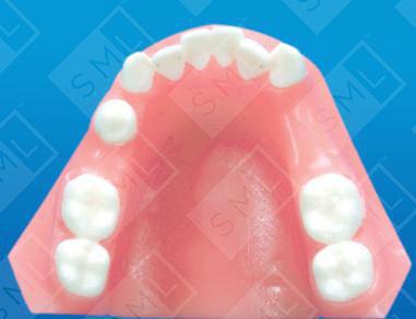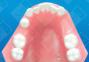 This lower adult treatment partial is used to provide a functional occlusion by replacing the 1st and 2nd bicuspids on the right side. The left first bicuspid is being moved mesially prior to construction of a fixed bridge. For cosmetic improvement, the laterals are being moved labially with finger springs after some light mesial-distal stripping to gain the needed space. Note - Please send an opposing model and an occlusal record to ensure a proper functional relationship is established.