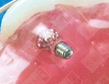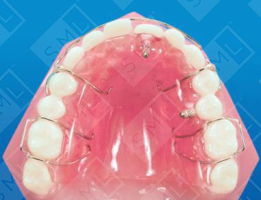 Individual teeth can easily be moved labially with a removable appliance. In this instance, a micro-screw is being used. This special screw has a spring-loaded piston within its housing. By adjusting the screw one-half turn weekly, a constant pressure can be maintained on the tooth to be moved. A special screwdriver is available from SML. Micro-screws work well when direct labial or buccal movement is needed and if the tooth is sufficiently erupted (at least 4mm of the lingual surface needs to be well exposed). If a tooth needs to be rotated as it is moved labially, it would be best to use a recurved finger spring or bonded brackets. Caution: Do not over-adjust the micro-screw. This may damage the spring-loaded piston.