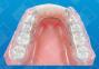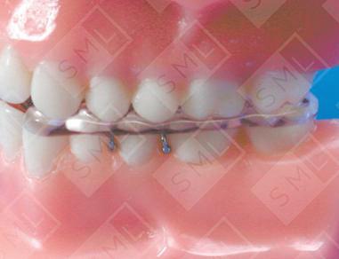 The Witzig Splint is a mandibular splint that is designed to precisely position the mandible and hold the condyles in the ideal physiologic position within the fossa. Like the Levandoski approach, the position is predetermined with the use of precise radiographic records and a unique articulator. First, the Witzig/Denar articulator and face bow transfer are used to mount accurate casts. Then transcranials or tomograms of each joint are taken to precisely determine the position of the condyles in occlusion. Using these radiographs, a tracing along with measurements of the joint complex are completed to determine the ideal physiologic position of the condyles. This information is then transferred to the articulator so that an occlusal record can be generated at the ideal anterior and posterior vertical dimension. This position should be confirmed radiographically prior to making the appliance. The actual appliance is a modification of the Mora/Gelb design. The occlusal surface is finished with positive indentations of the upper posteriors, capturing both the buccal and lingual cusps. Once the patient accommodates to the new position, the occlusal indentations can be reduced if desired.