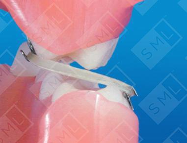 Many practitioners find it easier to use bonded hooks (instead of bands) when they need to jump a molar crossbite. Direct bond hooks are placed on the buccal surface of the maxillary molar and the lingual surface of the mandibular molar. Inter-arch elastics are then used to correct the crossbite. Reciprocal force is applied, moving both molars. If only one tooth needs to be moved, the other must be tied to an anchor unit or this approach will not work. If desired, buttons can be used in place of hooks; however, hooks retain the elastic better. Note: If the patient is already in the adult dentition stage, slight occlusal adjustment of the molars or use of a bite plane is often required during treatment -- and can be accomplished by using a Hawley with an anterior bite plane or a bruxism splint. Once the condition is corrected, normal intercuspation is usually sufficient to maintain the results.