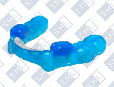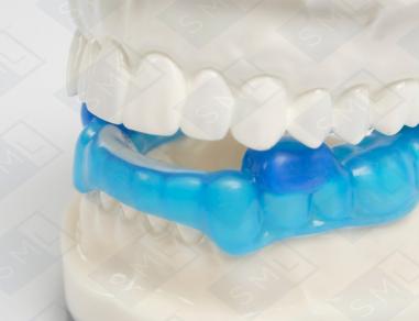 The unique design of the Morning Repositioner incorporates raised blocks of compressible material, strategically placed directly above bicuspids. All clenching forces are directed straight down toward the root -- rather than laterally or forward onto the anterior teeth. When in contact with the upper dentition, the only point of contact is the raised blocks.