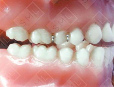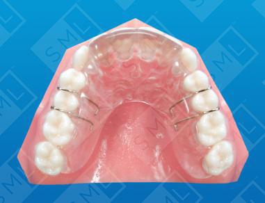 The Oakes Splint is specifically designed to stop a patient’s clenching or grinding habit. It works by using a maxillary lingual anterior bite plane that is built up so that only the lower incisors contact the acrylic. Placing all of the clenching forces on the anteriors initiates the nociceptive trigeminal inhibition response and inhibits the temporalis muscles from making strong contractions. Leaving the posteriors completely out of occlusion not only protects the dentition from damage due to bruxism, but leads to the reduction or total elimination of the clenching and grinding habit. Note - This appliance fits the upper arch like a retainer and is held in place by bilateral ball clasps. The palatal acrylic is finished in a horseshoe shape for patient comfort.