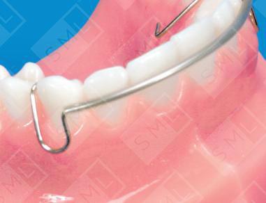 This labial wire is preferred on retainers when the anterior teeth are restored with veneers. The plastic coating protects porcelain surfaces from possible wire abrasion.