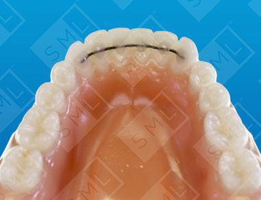 The QCB™ Final Retention System includes the items you need to treat a single patient with QCB™ Quick Cosmetic Braces. The cuspid-to-cuspid retention splint (available in upper and lower) consists of a multi-stranded, lingual wire -- carefully contoured to the lingual of the six anterior teeth and bonded to each tooth. Its key advantage lies in the use of a laboratory-fabricated transfer tray that makes correct placement of the wire easy -- and requires a minimum of chair time. The process: Etch; rinse and dry; place bonding agent; place cement on each pad; place tray and cure; carefully remove tray. After cuspid-to-cuspid bonding is achieved, a clear Essix-type retainer (when requested) fits over the entire arch and lingual wire to ensure full arch stability. Note: When requesting QCB™ Lingual Technique Indirect Bonding Trays for the maxillary anteriors, it is important to send an opposing model and a wax bite. Sufficient overbite and overjet is essential to avoid interference.