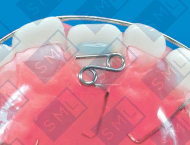 An alternative to a micro-screw for moving a tooth labially. With proper positioning and adjustment, this spring can also be used to correct minor rotations. To activate springs, simply pull forward on the spring’s arm with 139 Bird-Beak Pliers. Typically, if the lingual surface of the tooth to be moved is quite vertical, the acrylic is left over the top of the finger spring. However, if the lingual incline is rather shallow, it is suggested that a composite ledge be placed on the tooth's lingual.