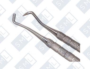 Properly position a band, secure it in place, then clean away the excess cement – all with the same instrument. Features a finely serrated band pusher on one end, with an all-purpose scaler on the opposite end.