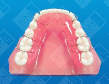 Shown here is a removable Simple Mandibular Retainer with standard Hawley type labial arch wire. Adams Clasps and rests are placed on the molars for posterior stability and to keep the appliance from over-seating into the tissue. Note: For fabrication, always send the lab both upper and lower casts --along with a bite relationship.