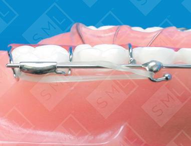 When the anteriors are not severely proclined, a sliding labial arch wire can provide a constant light lingual pressure sufficient to retract the anteriors and close up a small amount of excess space. The amount of force is controlled by the size of the elastic stretched between the hooks on the labial wire and the tube soldered to the Adams Clasps, through which it slides.