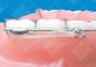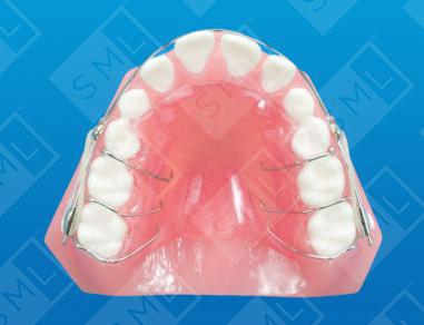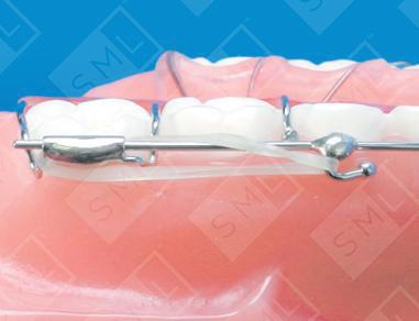When the anteriors are not severely proclined, a Sliding Labial Appliance can provide a constant, light lingual pressure sufficient to retract the anteriors and close up a small amount of excess space. The amount of force is controlled by the size of the elastic stretched between the hooks on the labial wire and the tube soldered to the Adams clasps through which it slides. Note: Make sure to relieve the acrylic away from the lingual aspect of the anteriors before attempting to move them lingually.