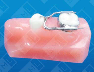 Regaining space may be accomplished by using a Band and Loop Unilateral Space Maintainer with sliding molar tubes and coil springs. This setup applies constant tension and may be used to move a premolar mesially with some reciprocal distal movement of the permanent molar. To adjust the appliance, simply stretch the coil springs prior to the initial seating of the appliance. No further adjustment is usually necessary. Note: To aid in easy insertion of this appliance, it is recommended to first pre-assemble the activated appliance on the working model. Then use dental floss to hold the activated loop passive during cementation.