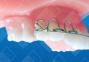 This appliance demonstrates the versatility of treatment partials. In this scenario, all of the anteriors are flared due to a loss of posterior support and periodontal disease. Specifically, both cuspids and the left lateral need to be moved lingually prior to gathering the rest of the anteriors and placing an intra-coronal splint. To accomplish this tooth movement, T-springs are used to move the cuspids and lateral lingually. Then, to finish gathering the anteriors, an elastic is placed across the labial surface of the anteriors stretching from hooks on the labial bow at the first bicuspids. All of this tooth movement takes place using a temporary treatment partial. Once all of the desired tooth movement is complete, an intra-coronal splint will be placed so that the splinting will not interfere with the design of the permanent partial.